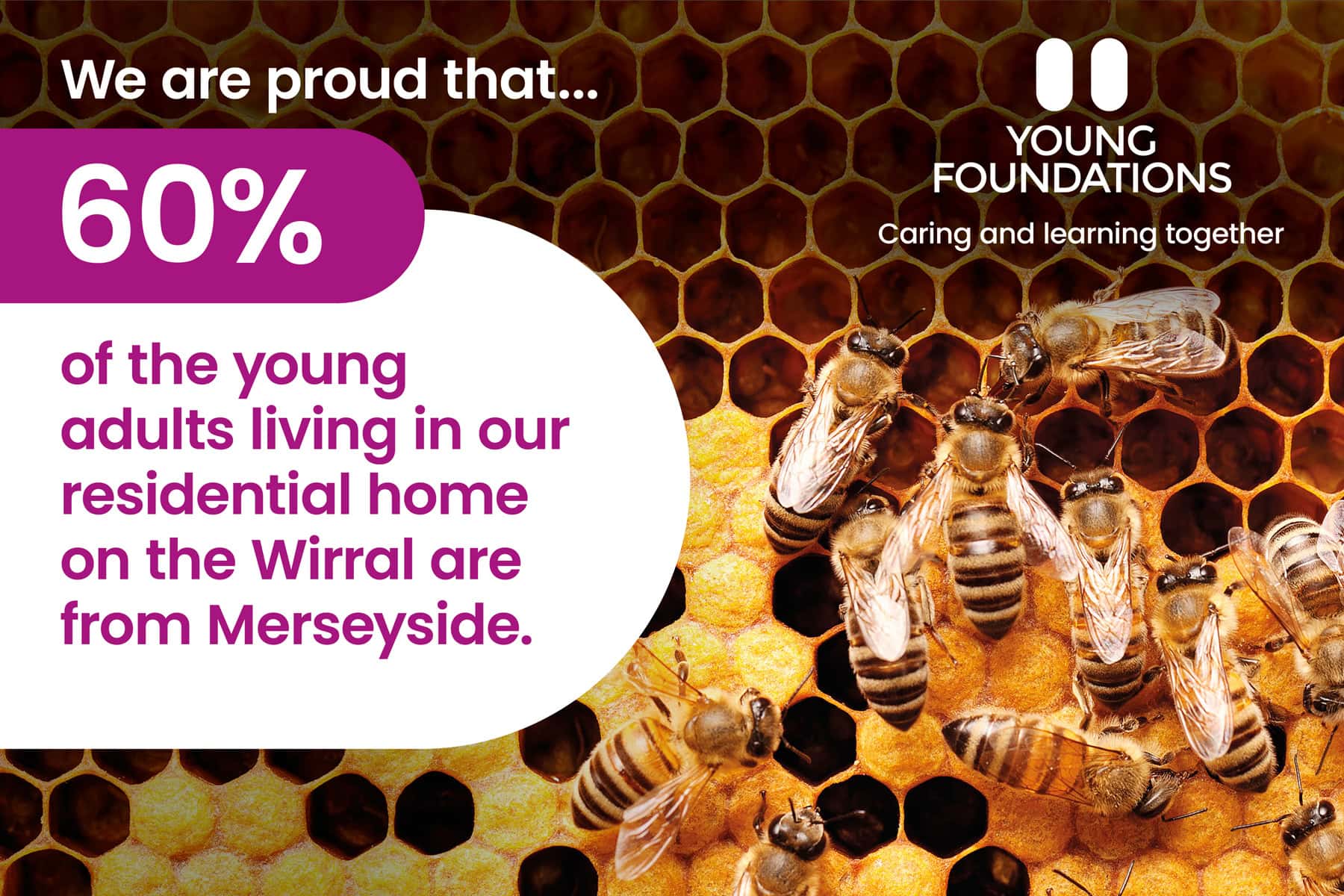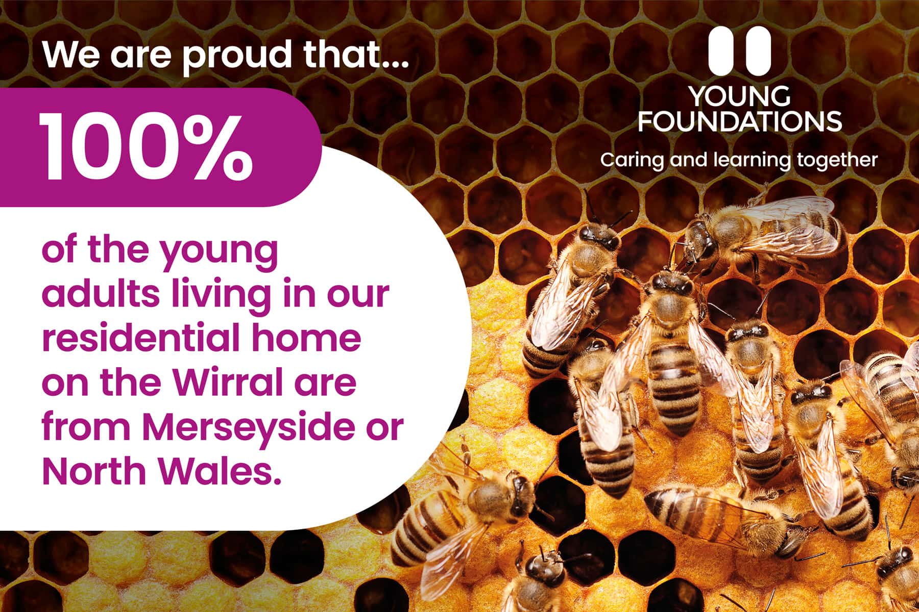 We are proud that many of the people living in our homes are able to remain close to their home areas. Across our North East children’s homes, around 70% of children live within 20 miles of their home community. In Wrexham, 60% of children living in our homes are from North Wales, helping them stay connected to the region they know. Similarly, on the Wirral, 60% of young adults living in our residential homes are from Merseyside, and all residents (100%) are from either Merseyside or North Wales.